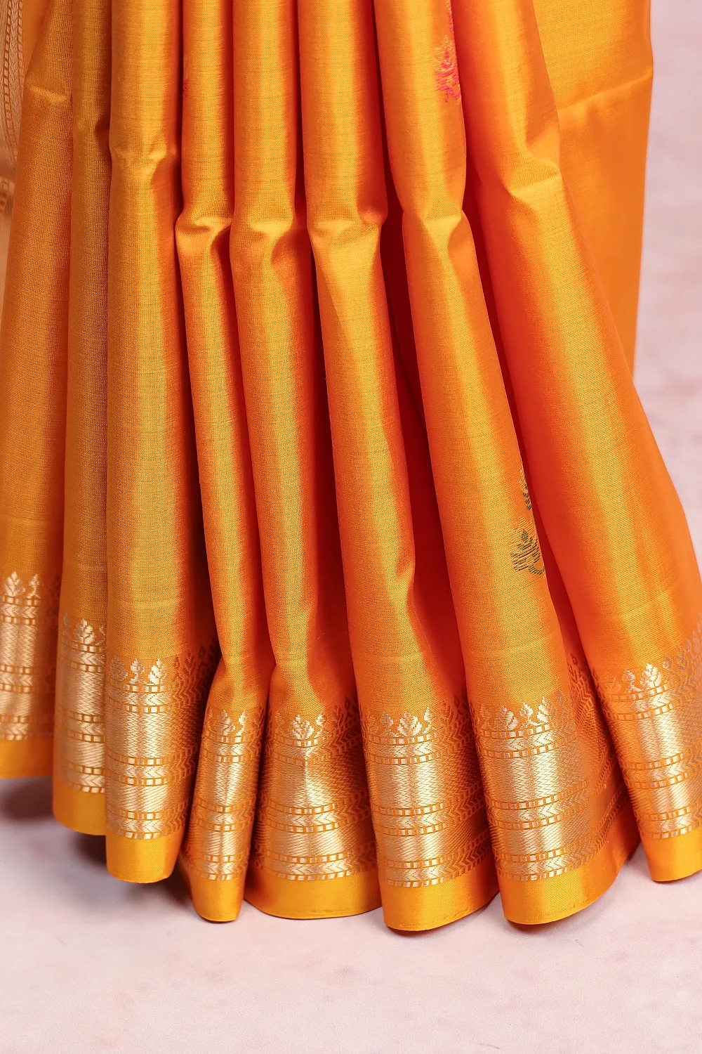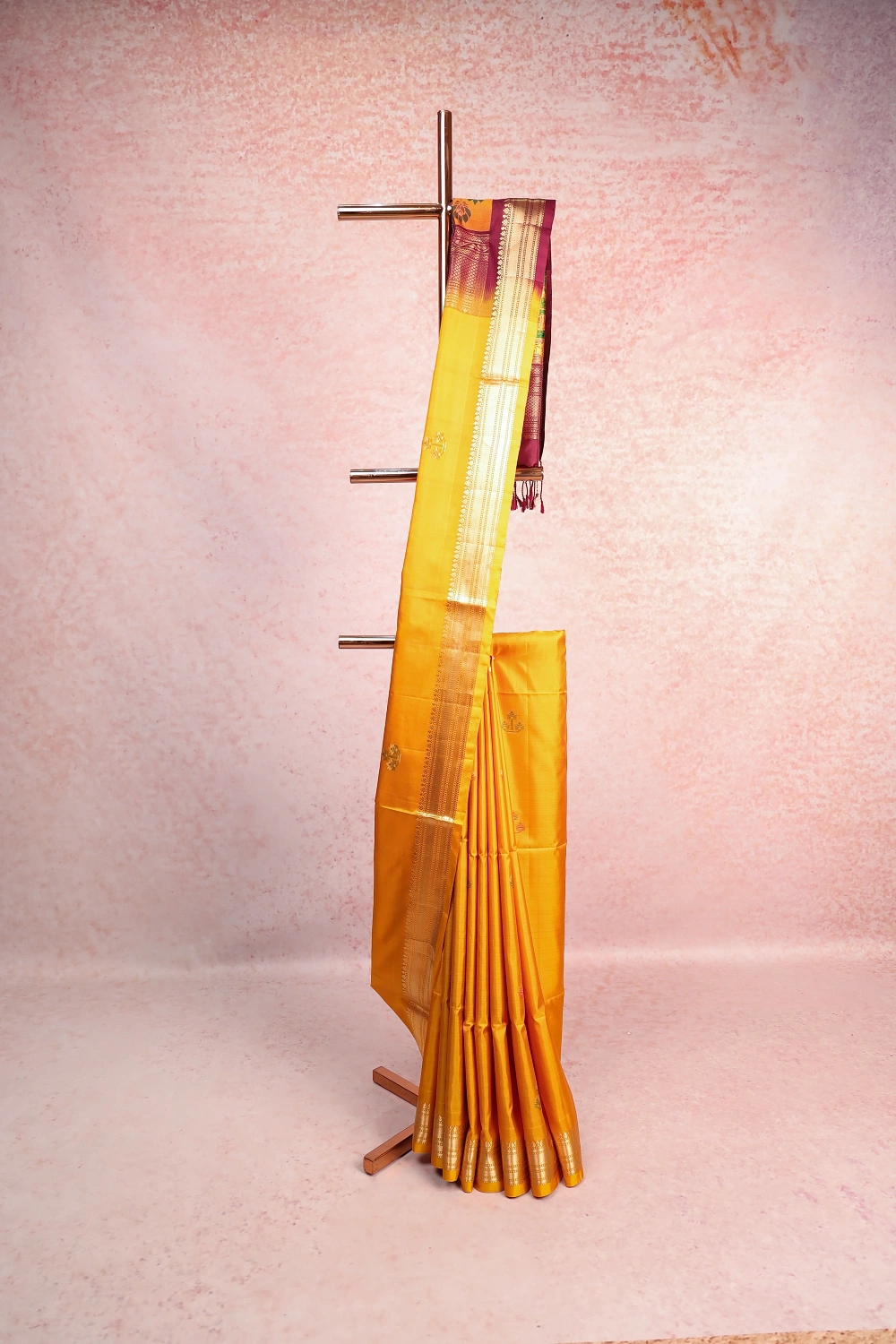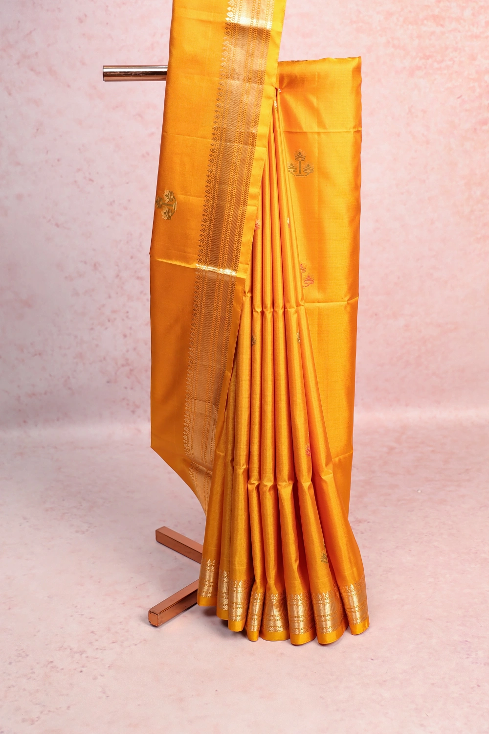Yellow Kancheepuram Soft Silk Butta Saree with Designer Border. Includes Un stitched Blouse