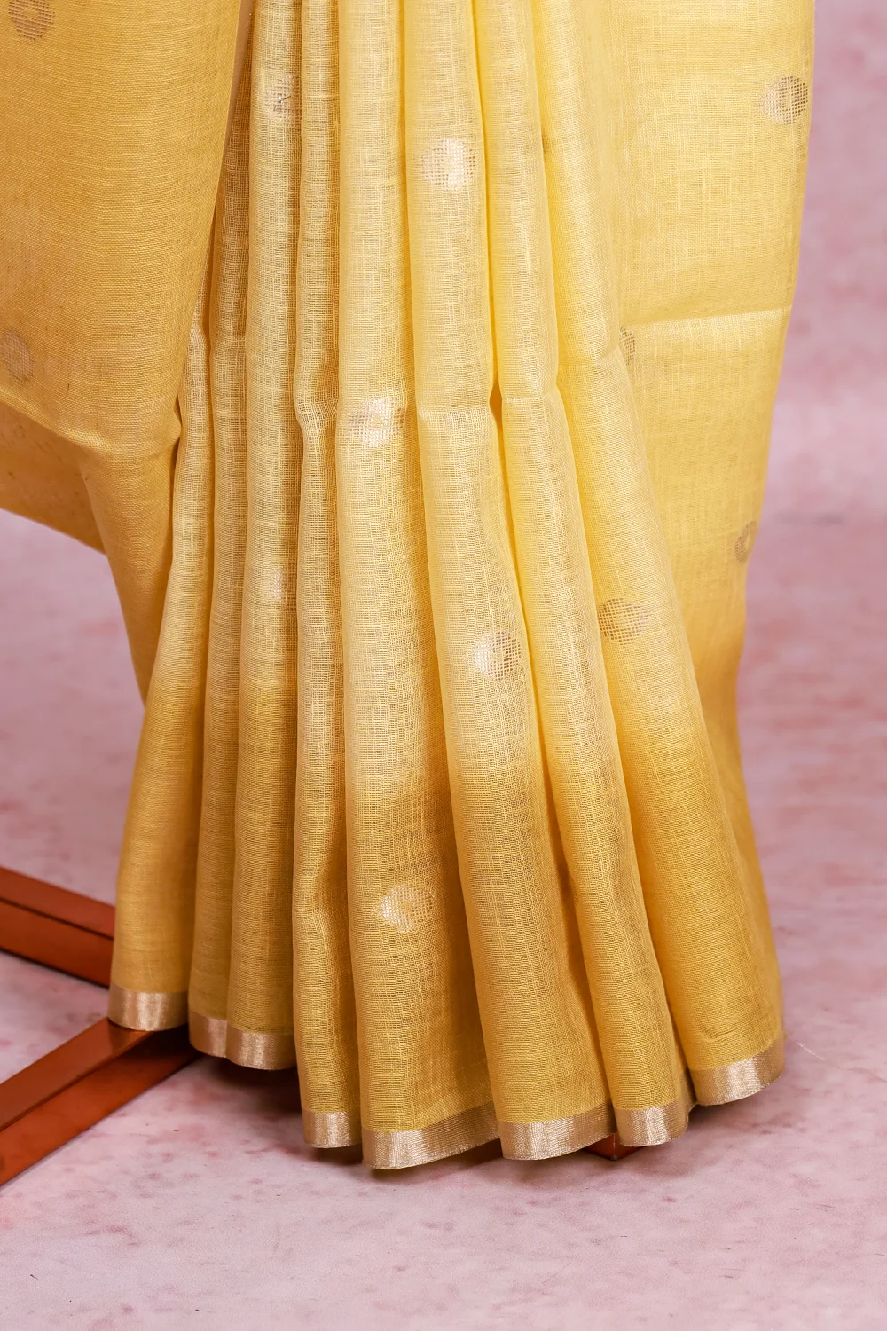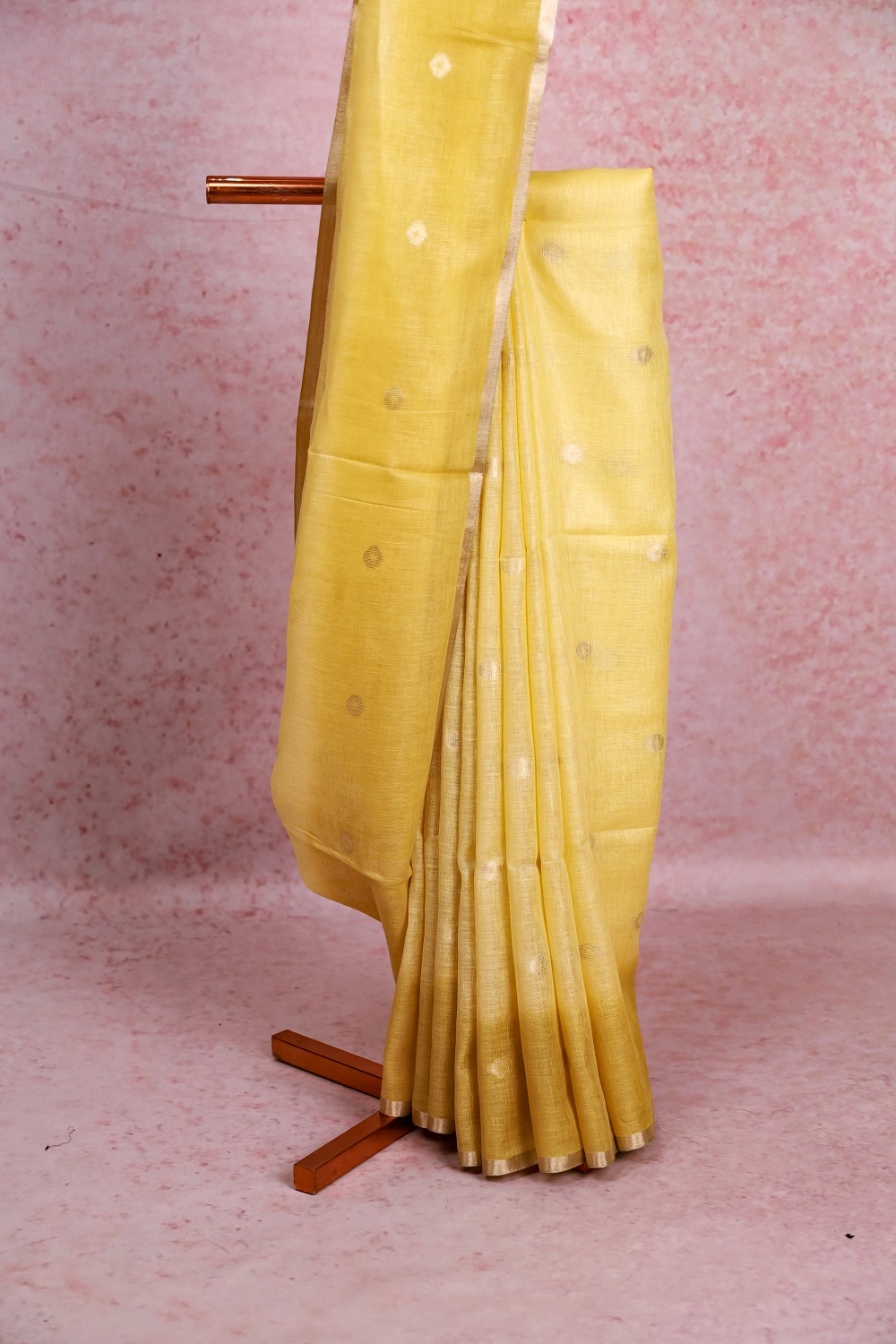 Yellow Linen Butta Saree with Small Border. Includes Unstitched Blouse