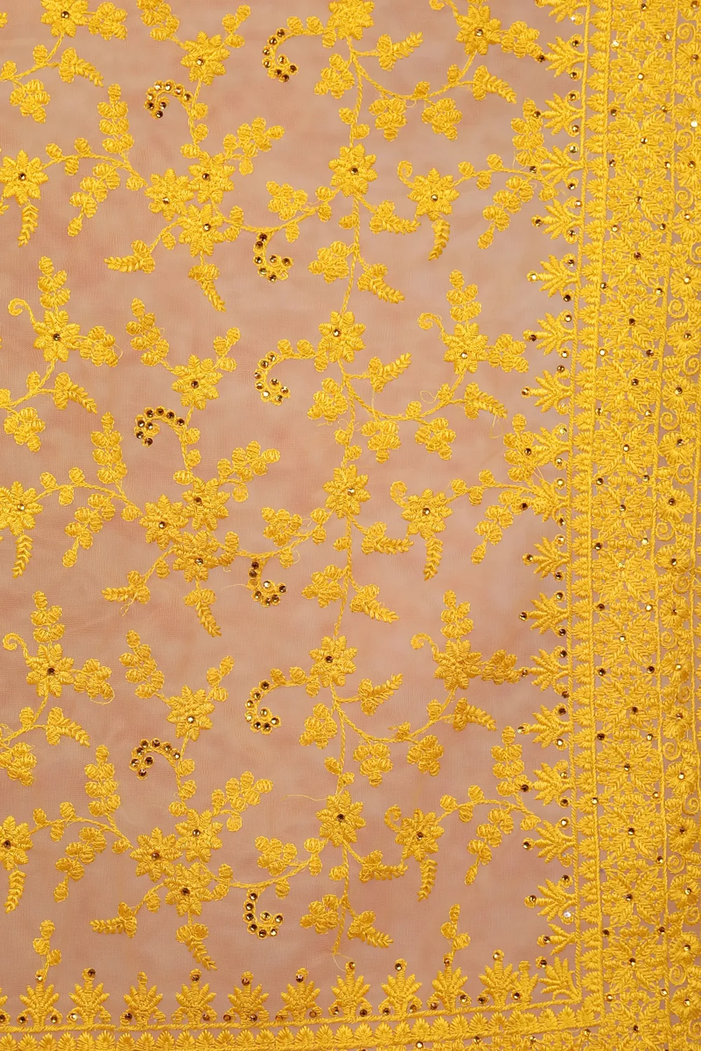 Yellow Net Embroidery Saree with Thread Border. Includes Unstitched Blouse