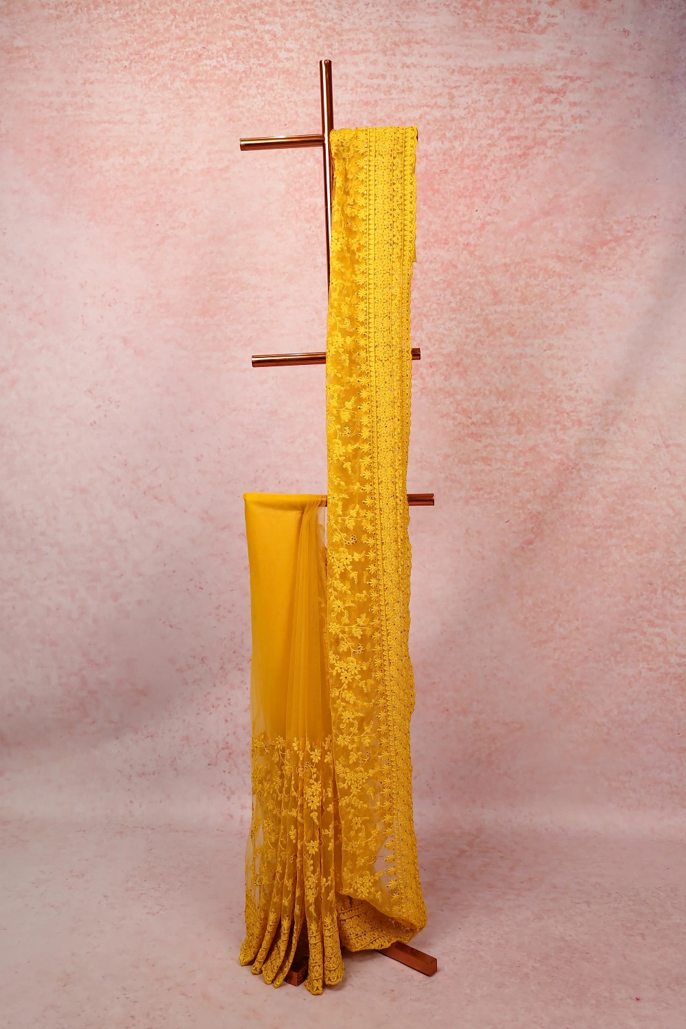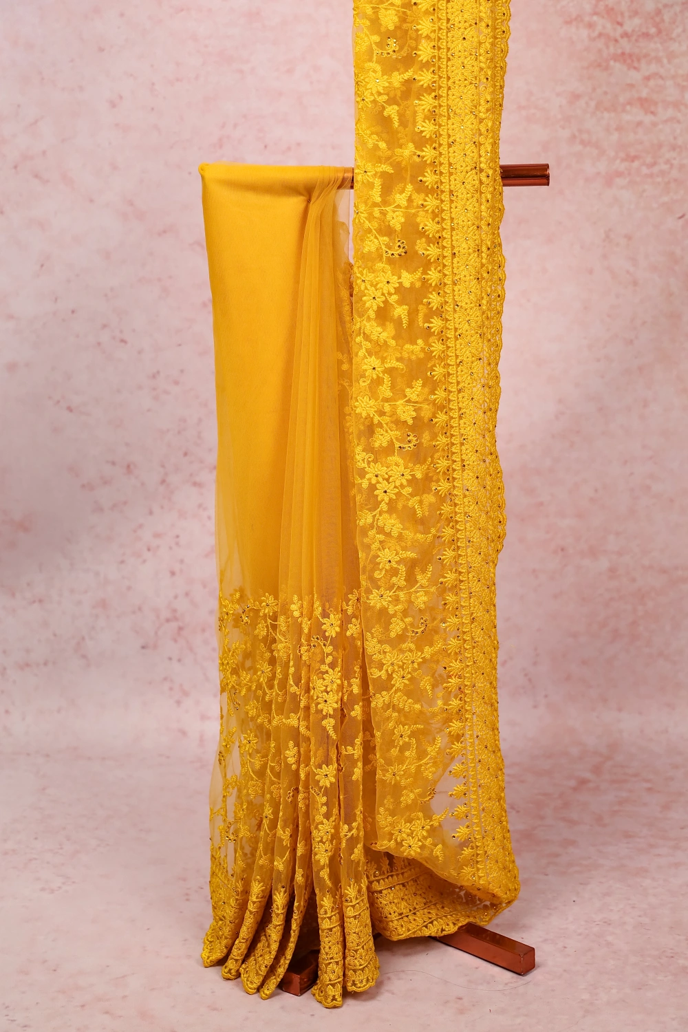 Yellow Net Saree