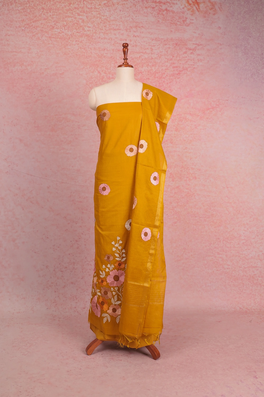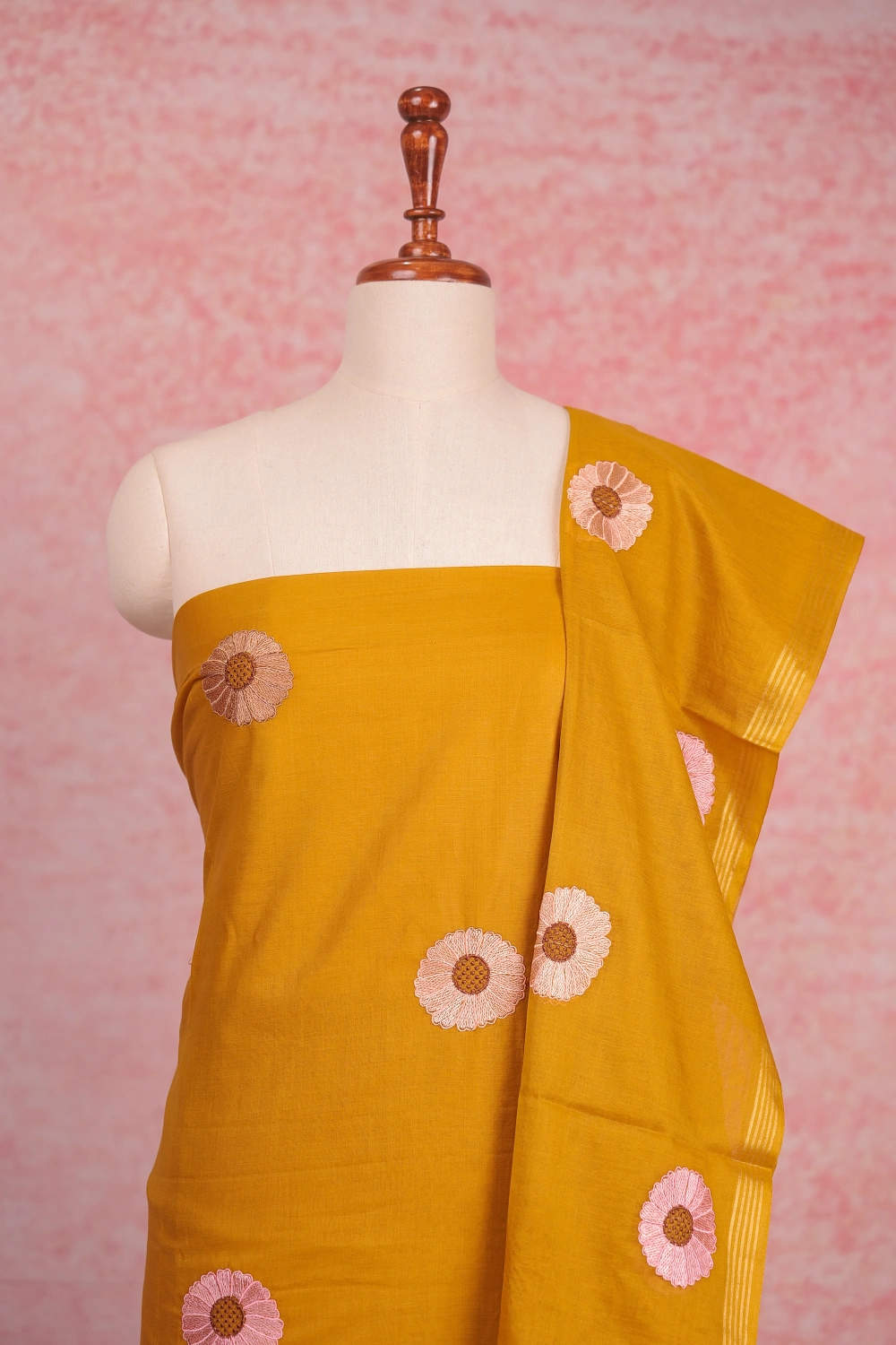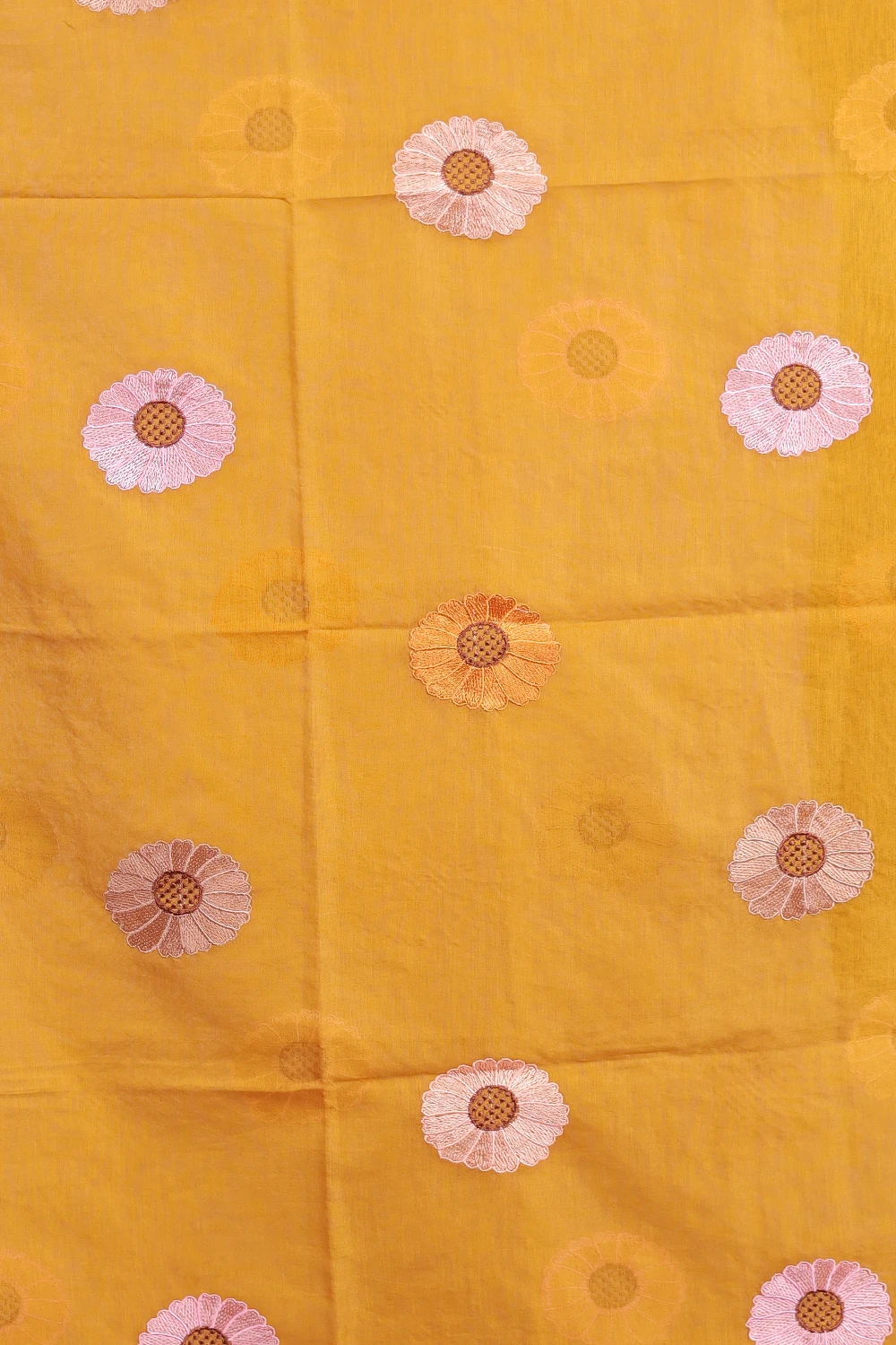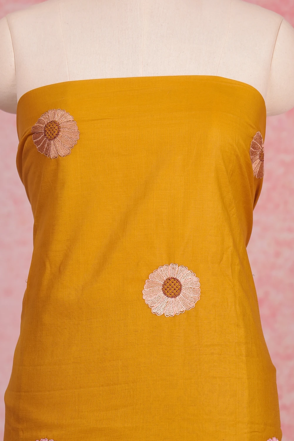 Yellow Semi Silk Embroidary Unstitched Churidar Material. Includes Dupatta.