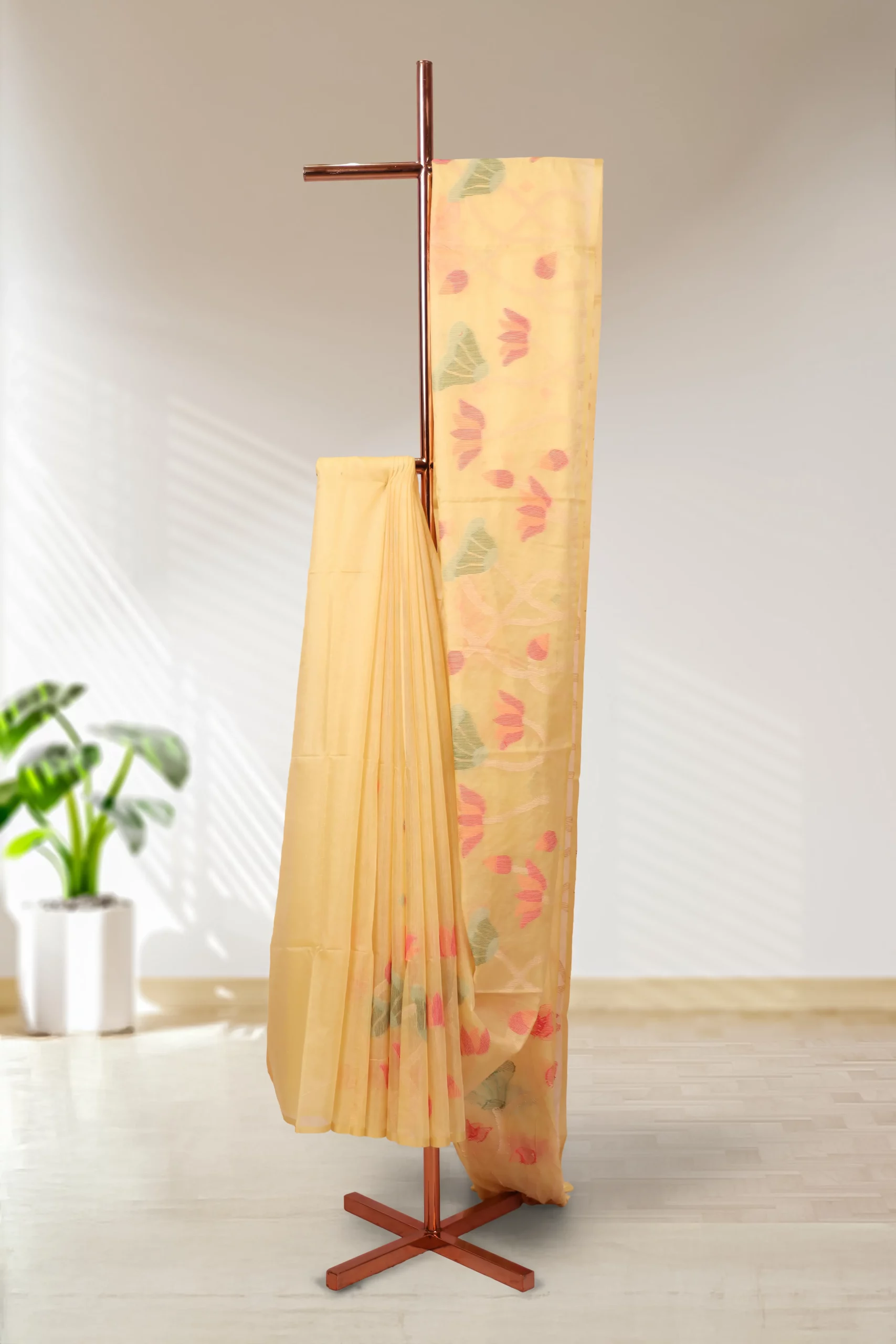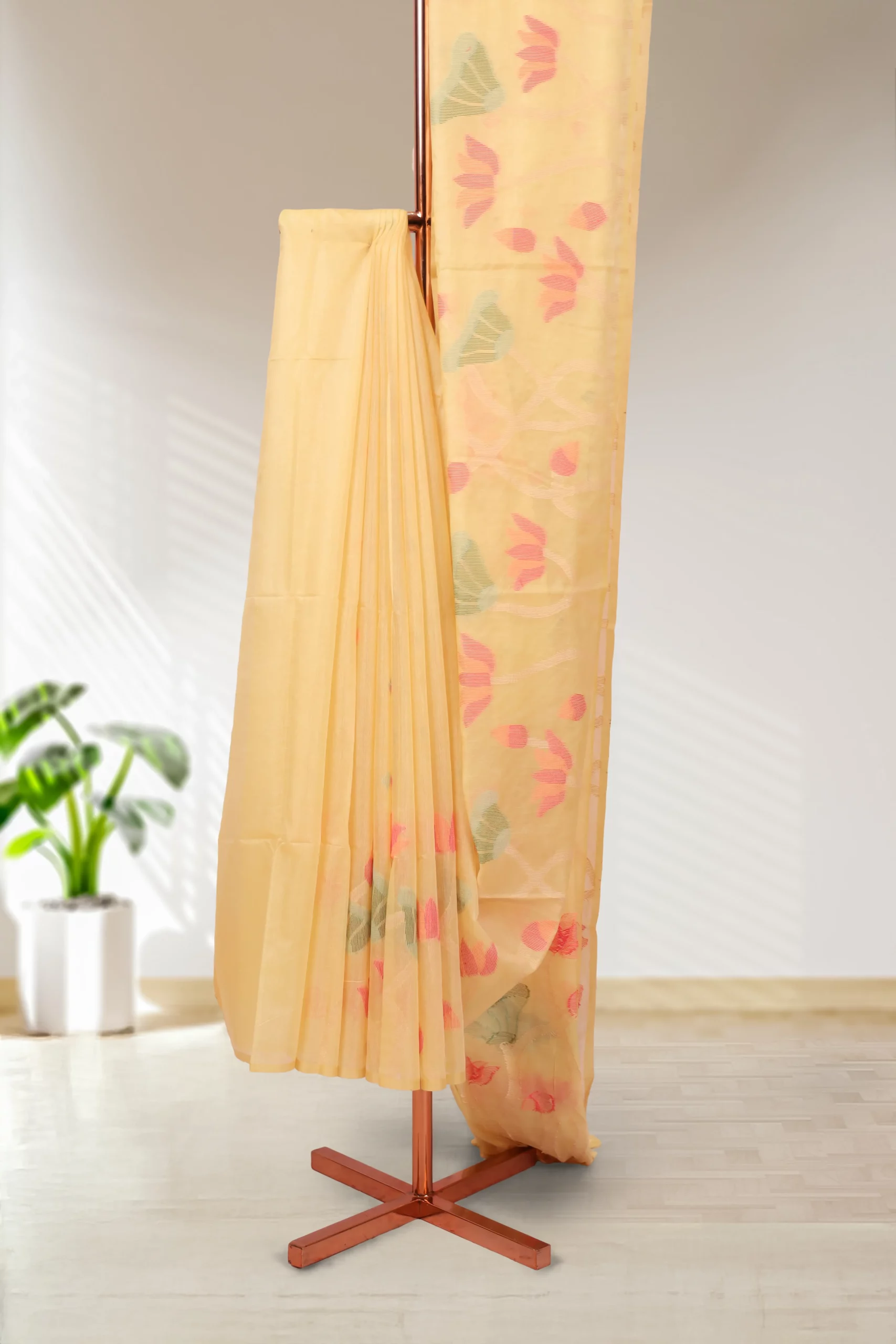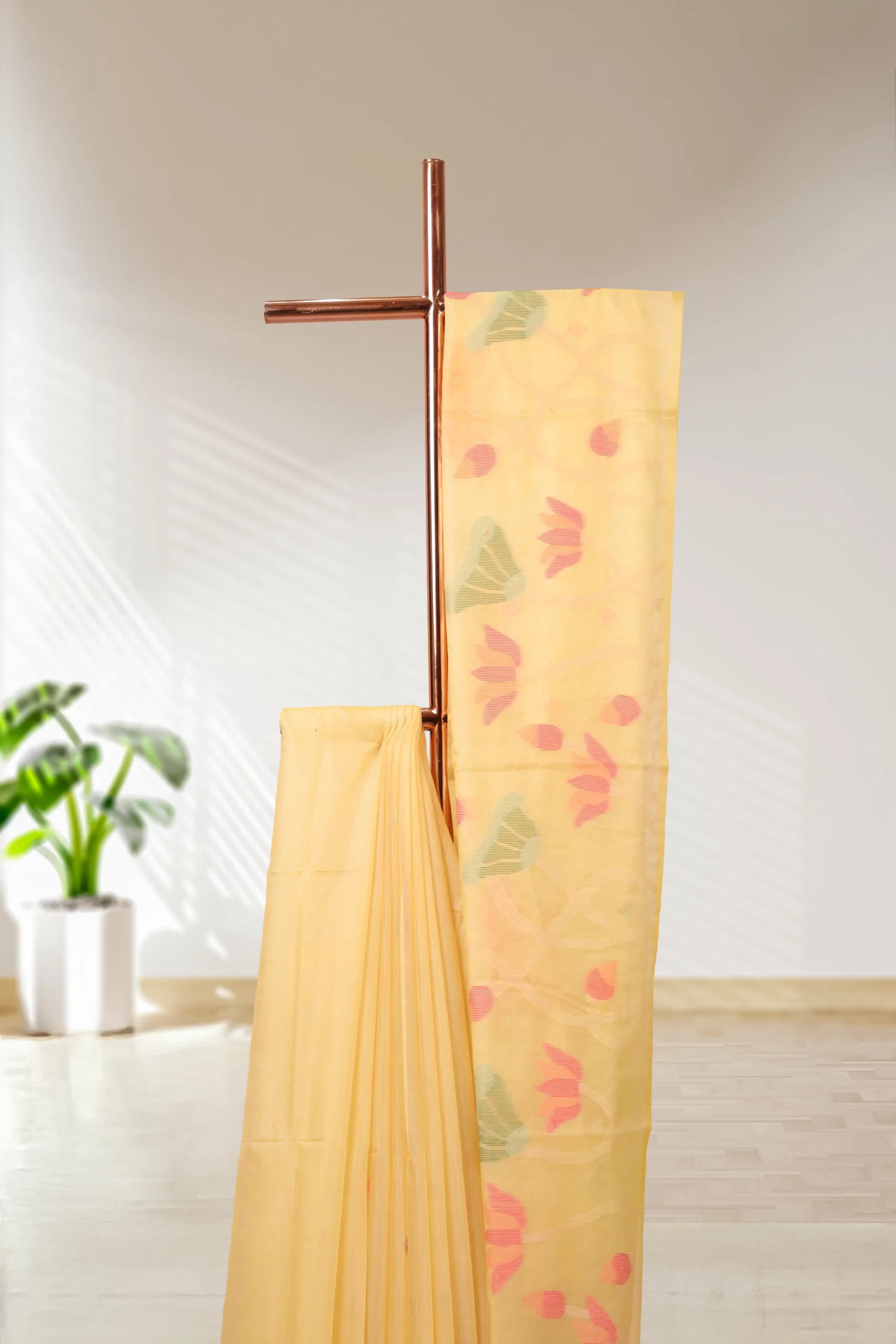 Yellow Semi Tussar Butta Saree with Without border. Includes Unstitched Blouse