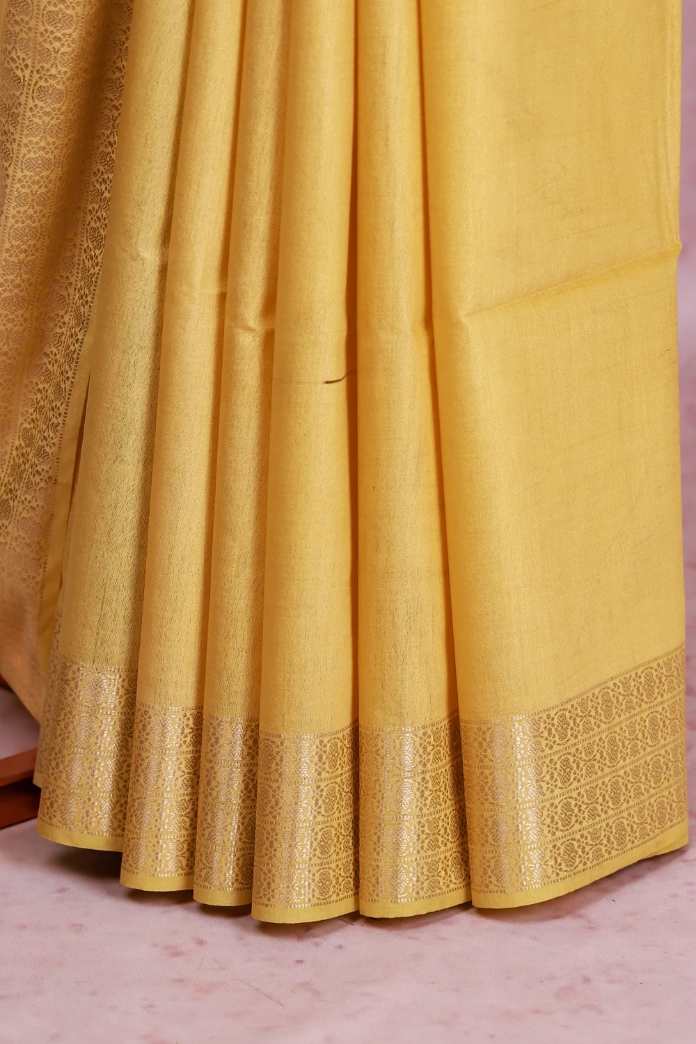 Yellow Semi Tussar Plain Saree With Banarasi Border. Includes Un Stitched Blouse