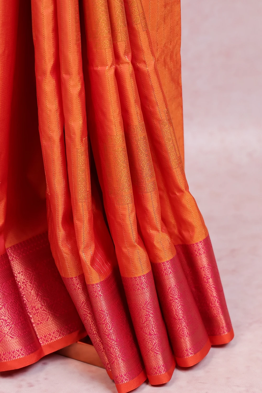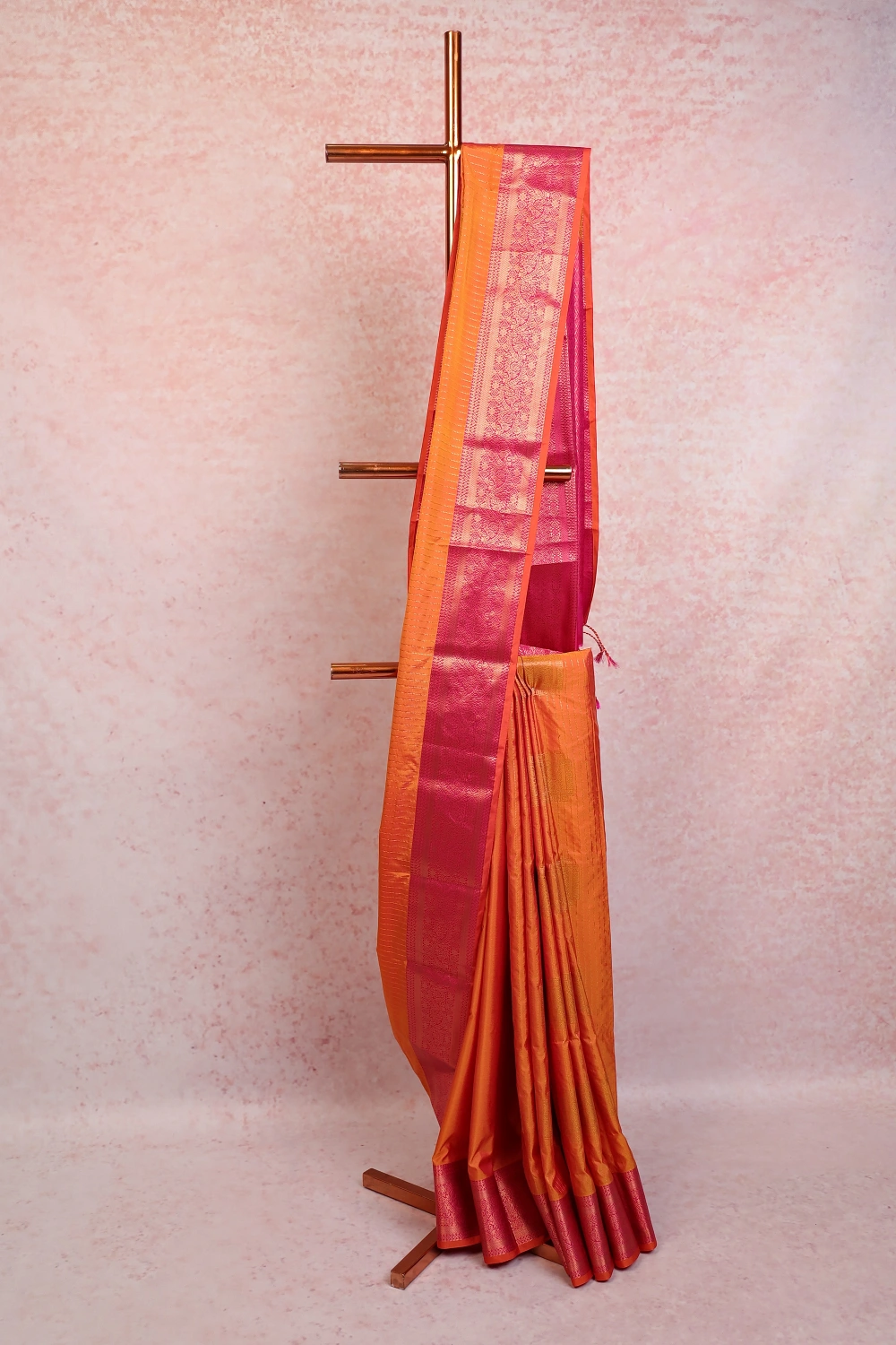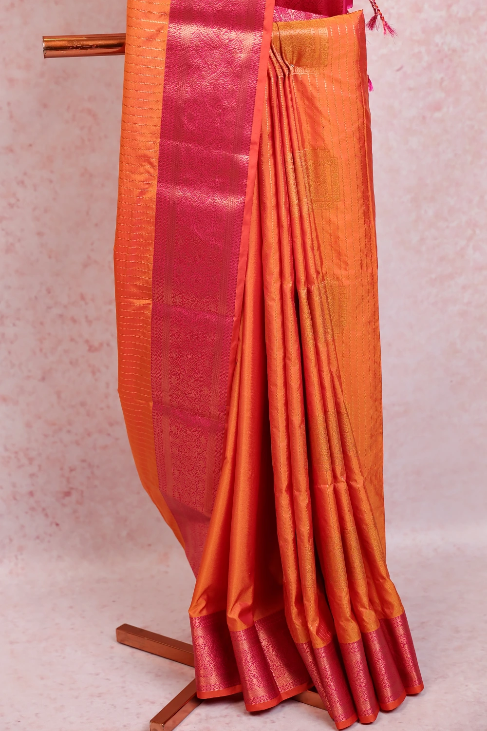 Yellowish Orange Kancheepuram Semi Silk Saree